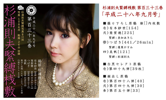 月額会員サイト杉浦則夫緊縛桟敷で掲載された一ヶ月分の画像と現場動画を1枚にまとめたデータDVD-ROM。